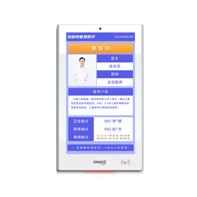 每個診室部署一臺液晶顯示終端,顯示出診專家(出診???、健康宣教等)信息,診室叫號時全屏(或分屏)顯示需就診患者信息。