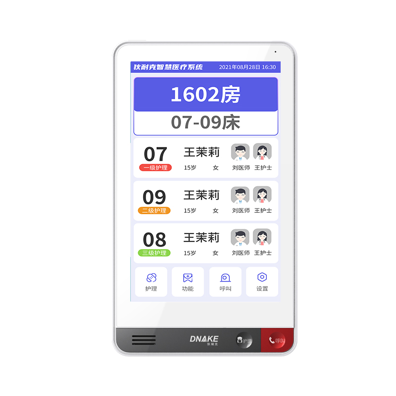 設(shè)置在病房門口的終端設(shè)備,主要用于顯示病房相關(guān)信息,內(nèi)置簡易醫(yī)護(hù)工作站,支持病房床位一覽、患者動(dòng)態(tài)跟蹤、呼叫對講、增援求救等多種呼叫類型,信息齊全,及時(shí)響應(yīng)醫(yī)護(hù)需求,實(shí)現(xiàn)智能化醫(yī)護(hù)管理。